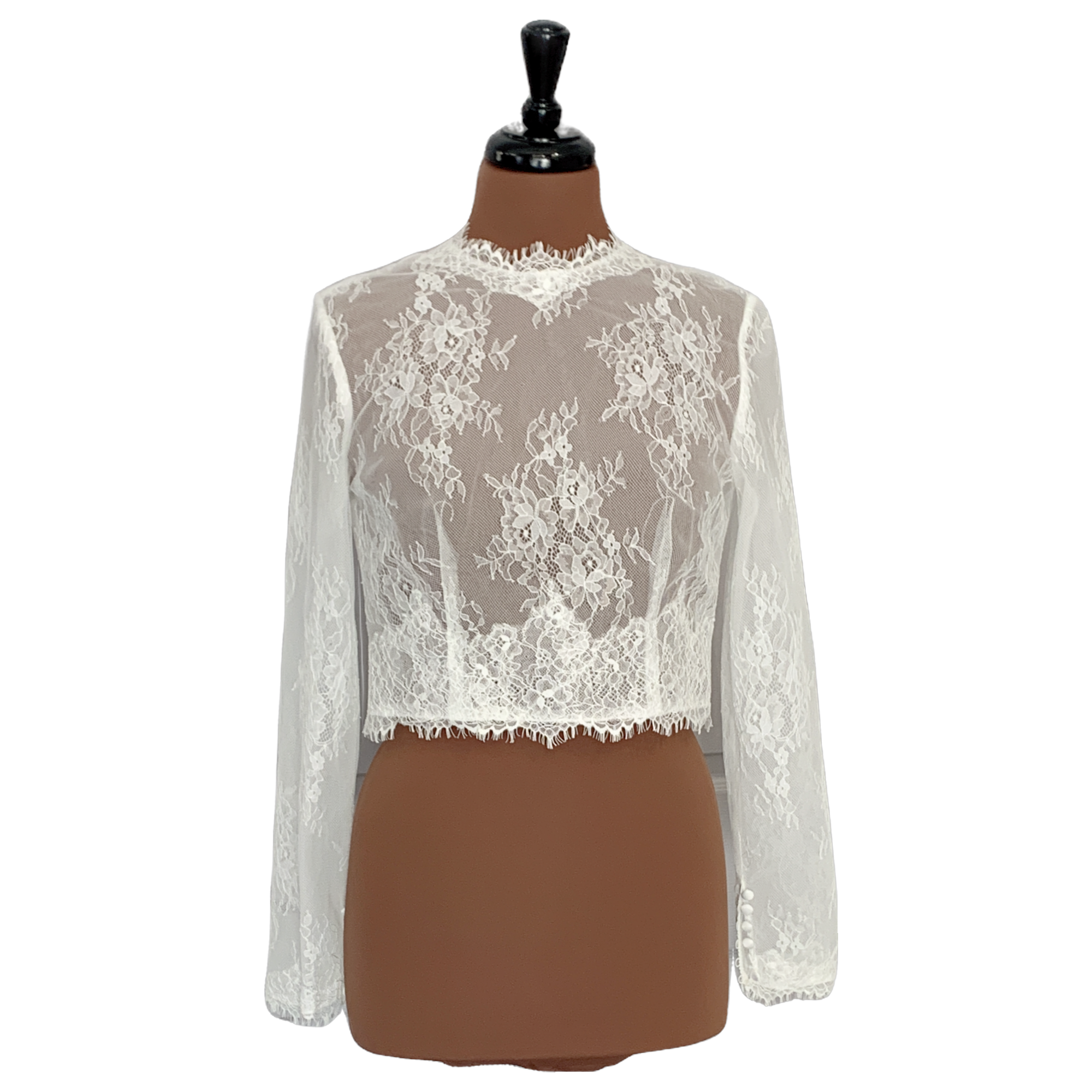 Crew neck lace topper. Ivory only.