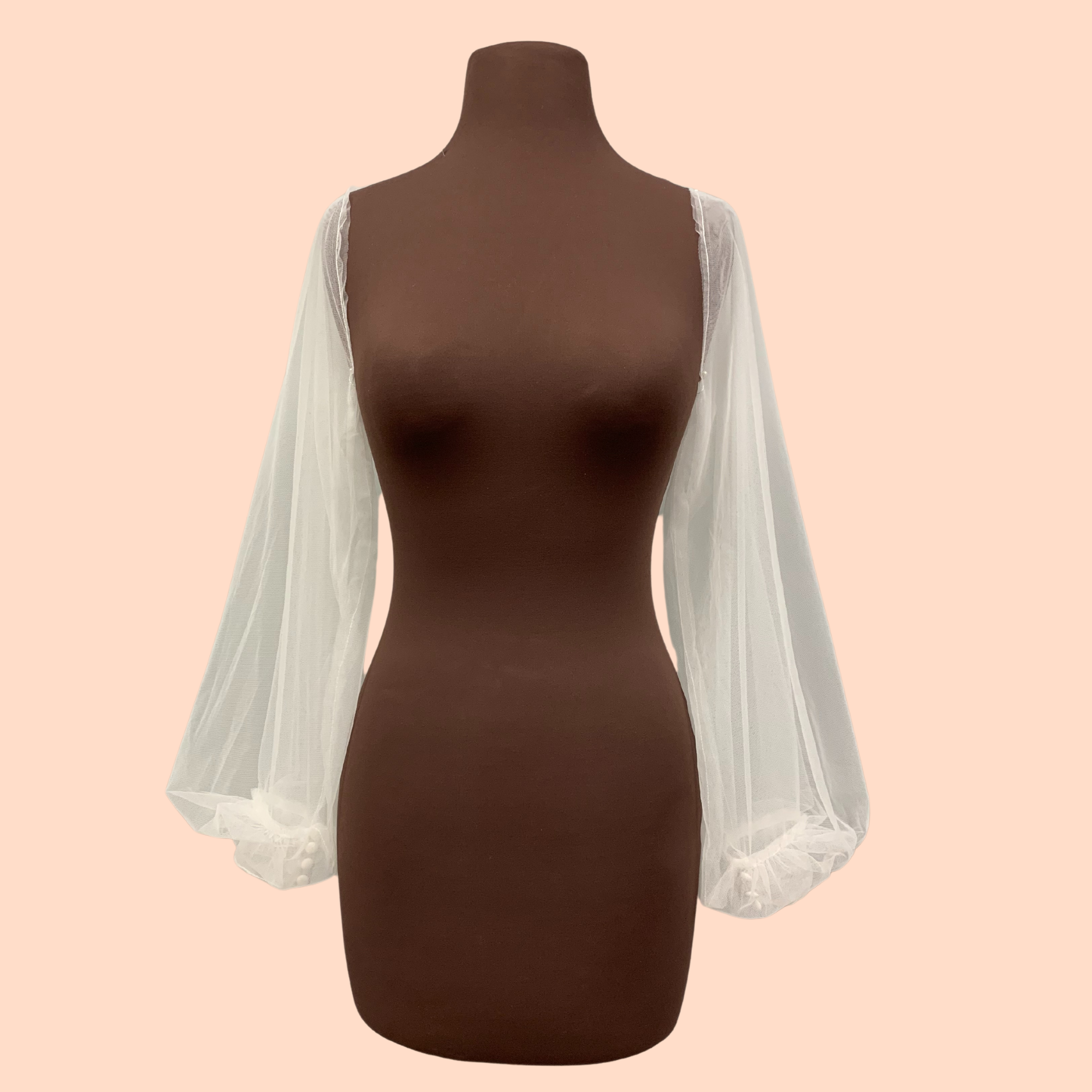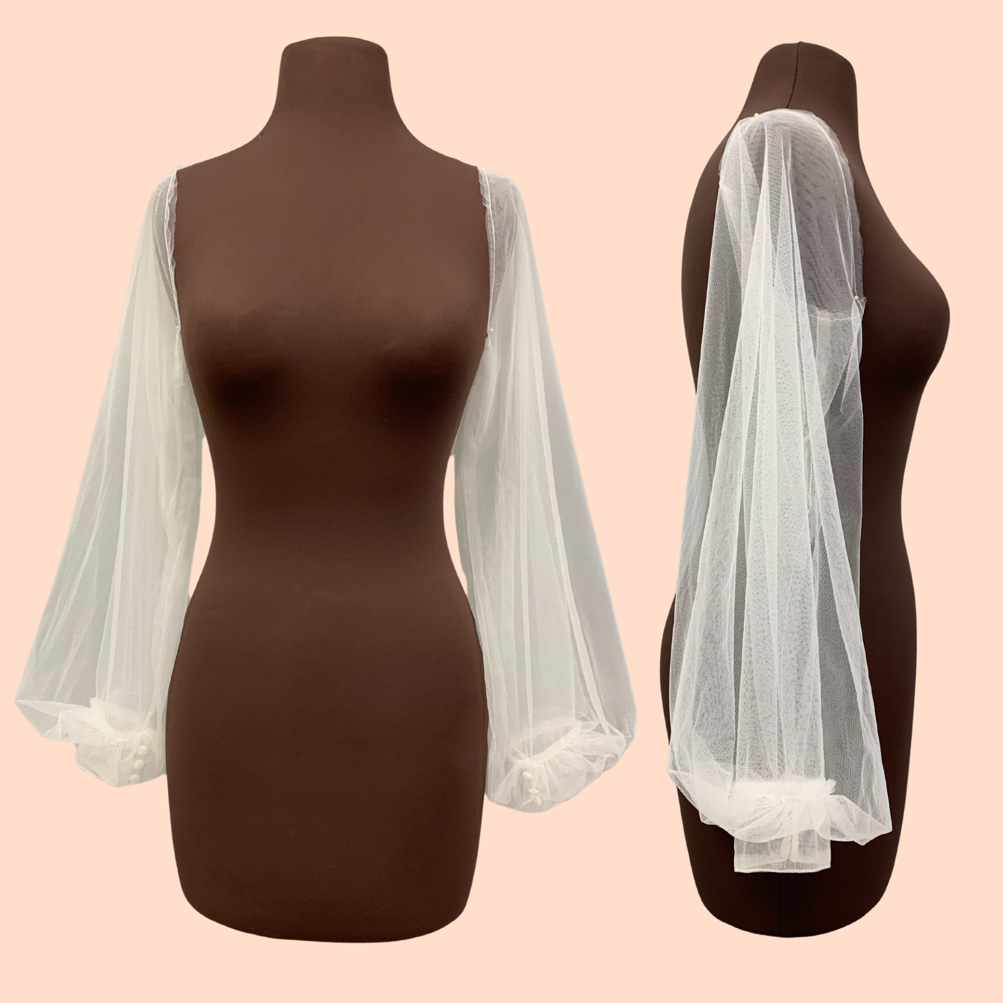 Plain tulle bishop sleeves. Available in Ivory and Black