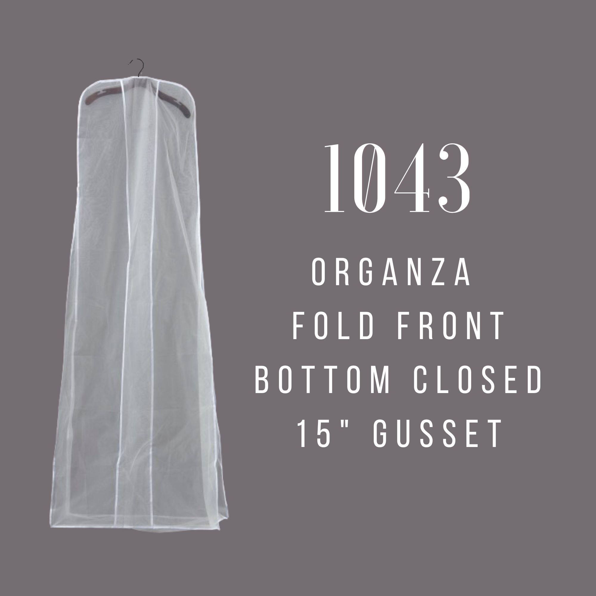 Fold front Organza with 15″ Gusset. Same as 1035, but with 15″ wide gusset. Pack of 10 Sheer Gown Covers for dress protection without the static electricity of standard plastic covers!